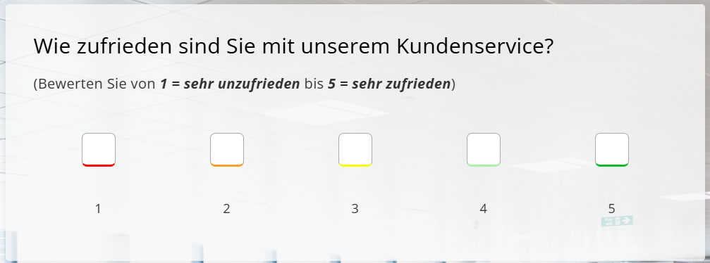 Für eine konkrete Bewertungsfrage, die Sie mit eckigen Buttons und unterschiedlichen Farben versehen wollen (siehe Abbildung 4), würde der Code dann wie folgt aussehen: