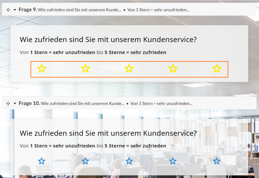 Die Bewertungsfrage mit Sternerating, deren Frage-ID im CSS-Code enthalten ist, wird nun wie gewünscht angezeigt (siehe Abbildung 3).